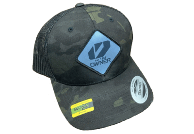 Features a prominent Owner Logo Patch on front. Multicam black with trucker mesh back. Matching plastic snap in back and matching undervisor. 8 rows of stitching on visor. One size fits all.